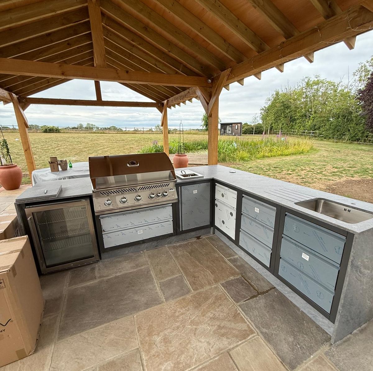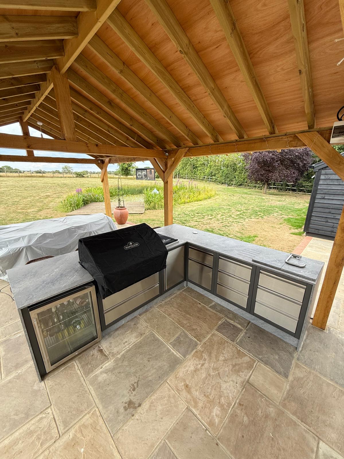 A recent project we completed was this bespoke outdoor kitchen build, designed to create the perfect space for entertaining family and freinds. Set under a solid timber structure, this installation combines practicality with a clean, modern finish.